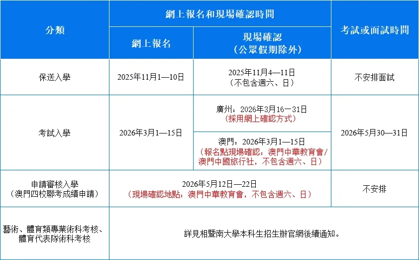 备注:上述日期及事项或有更新,将在暨南大学本科生招生办公室官网公布。